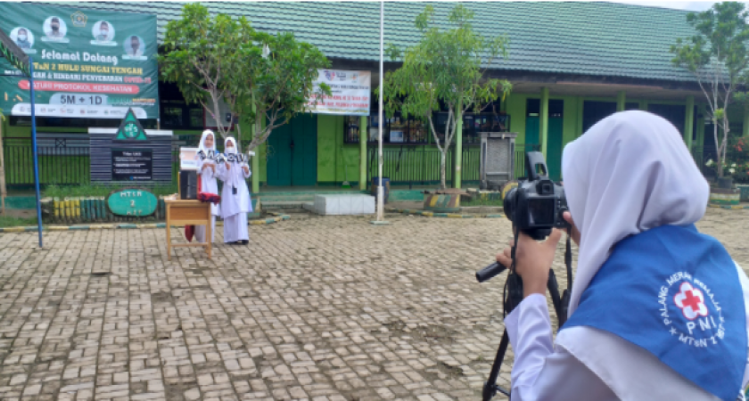 Barabai (MTsN 2 HST) –Siswa Madrasah Tsanawiyah Negeri (MTsN) 2 Hulu Sungai Tengah (HST) membuat video sosialisasi outfit atau seragam madrasah yang nantinya berguna untuk para si